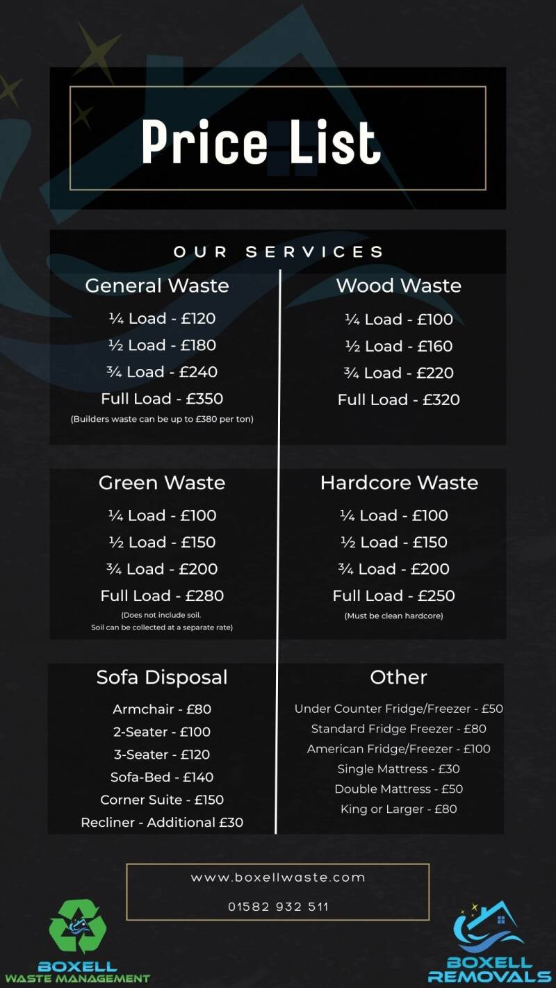 Understanding waste removal pricing can be challenging. To assist you, we've provided our pricing list below for your convenience.